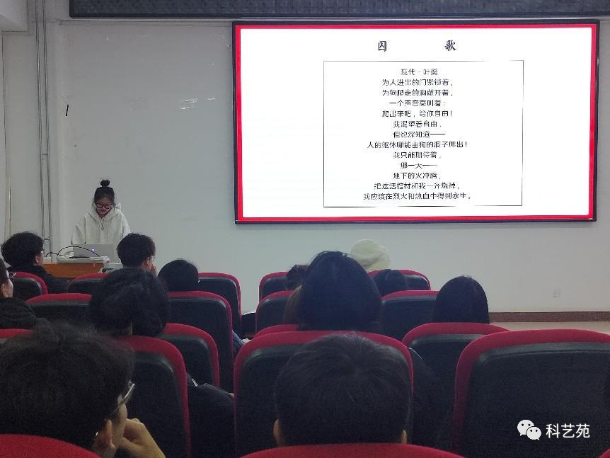 巴雨彤同志和大家一同鉴赏了《七律·长征》、《囚歌》等古典诗词,让大家踏上了一场文学之旅;徐驰骁同志就内蒙古经典文化展开分享,更深入的感受到内蒙古历史文化中独特的感染力和魅力。