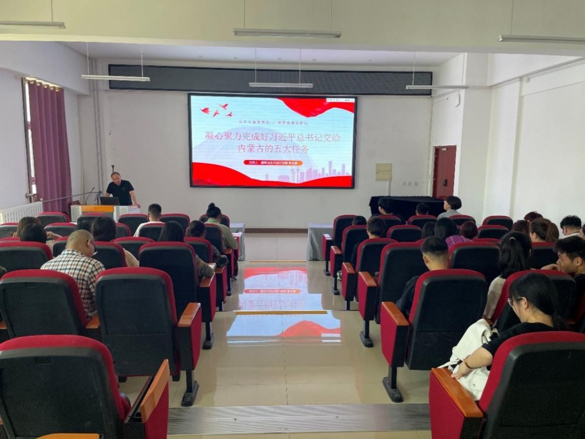 于2024年5月14日12:30在明德楼B401进行“凝心聚力完成好习近平总书记交给内蒙古的五大任务”的党课培训。本次党课主讲培训人是学院党委委员,副院长李志春。