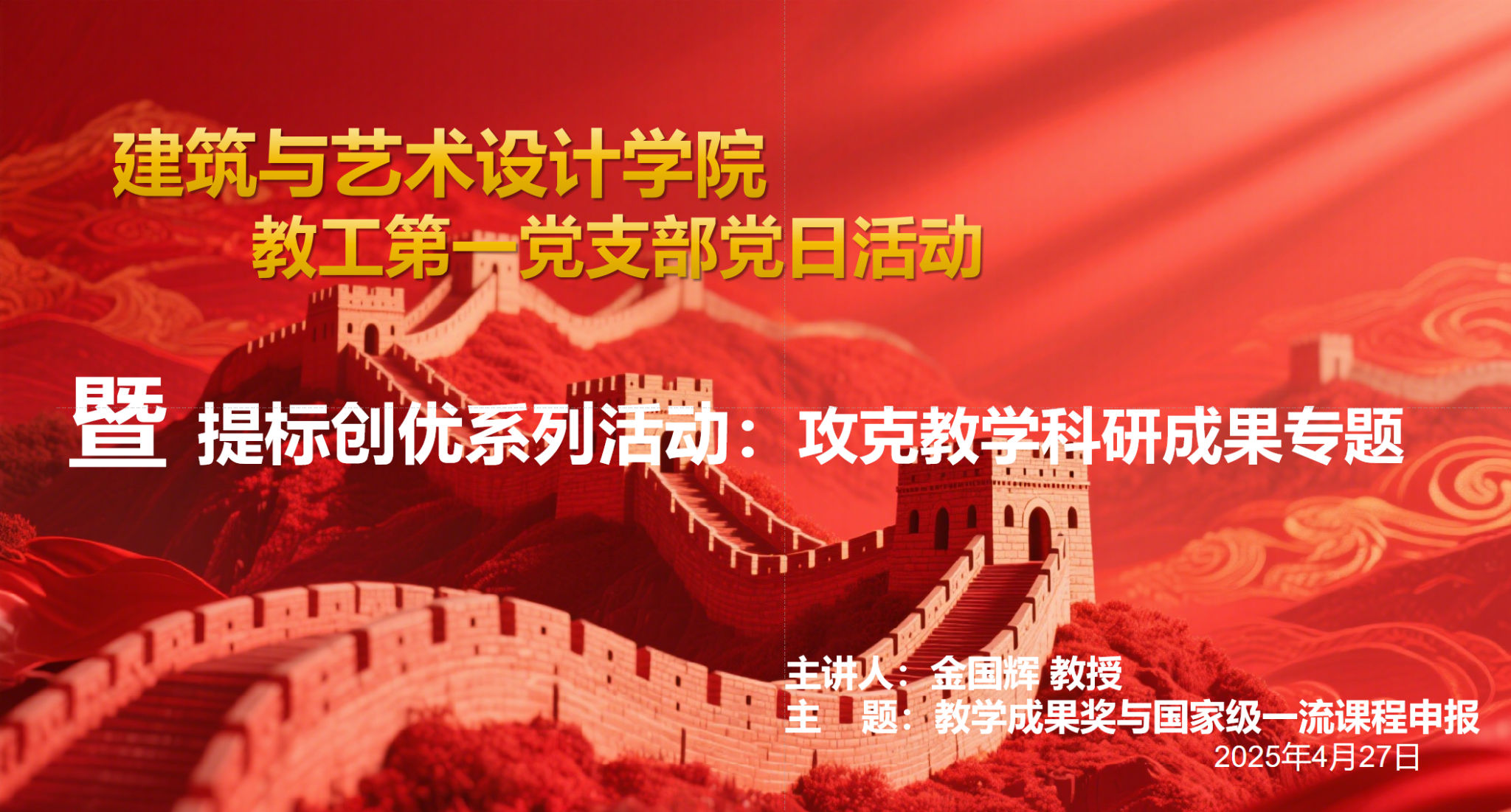 教工第一党支部于2025年4月27日14点30分在明德楼东A503开展本支部党日活动,暨提标创优系列活动——攻克教学科研成果专题。本次活动特邀土木工程学院金国辉教授进行关于“教学成果奖”、“国家一流课程”申报的专题讲座与交流,为支部教师带来了一场干货满满的学术盛宴。
