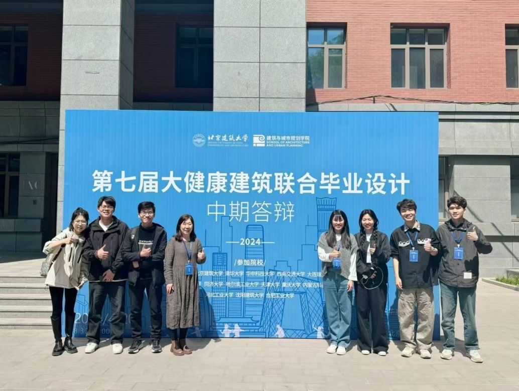 建筑系教师孙丽平、周碧瑶,带领张发、姚远、王佳妮、宋艳琦、姚望、张雪梅等6名同学前往北京建筑大学参加了“第七届大健康建筑联合毕业设计”中期答辩。此次联合毕业设计中期答辩活动有来自清华大学、同济大学、天津大学、重庆大学等15所高校的师生共同参加,汇聚了3场学术报告、7个答辩小组以及2场博士论坛,呈现了一场学术与创意交织的盛宴。