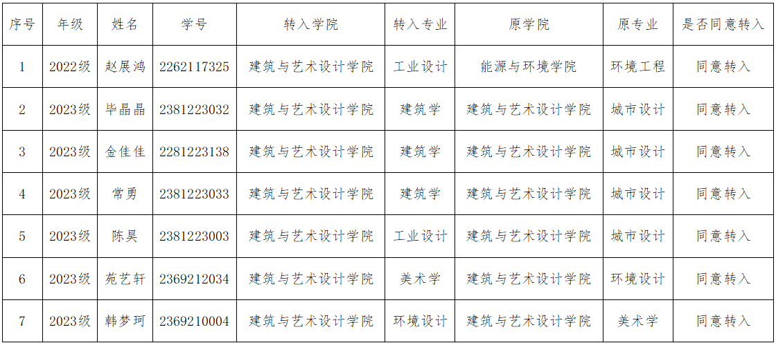 根据《成人在线 本科生转专业管理办法》、《成人在线 2024年转专业实施细则》文件精神,学院组织各专业对申请转入学生进行了考核,并报送学院党政联席会讨论决定,同意赵展鸿等7名同学转入我学院相关专业,具体名单见: