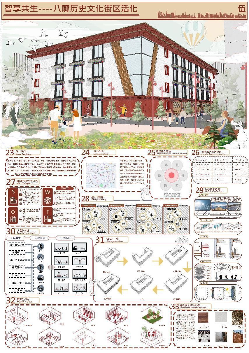 本届联合毕业设计题目是“雪域明珠·和谐共生:拉萨市八廓历史街区保护与更新设计”。项目设计考虑了特殊地域人文气候环境背景下的城市更新,以及藏式建筑的现代化更新,围绕八廓历史街区的实际需求拟定更新设计方案。