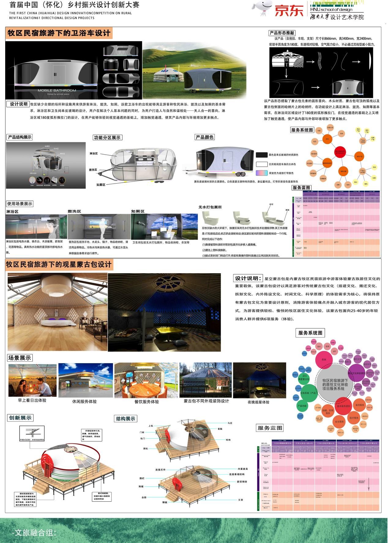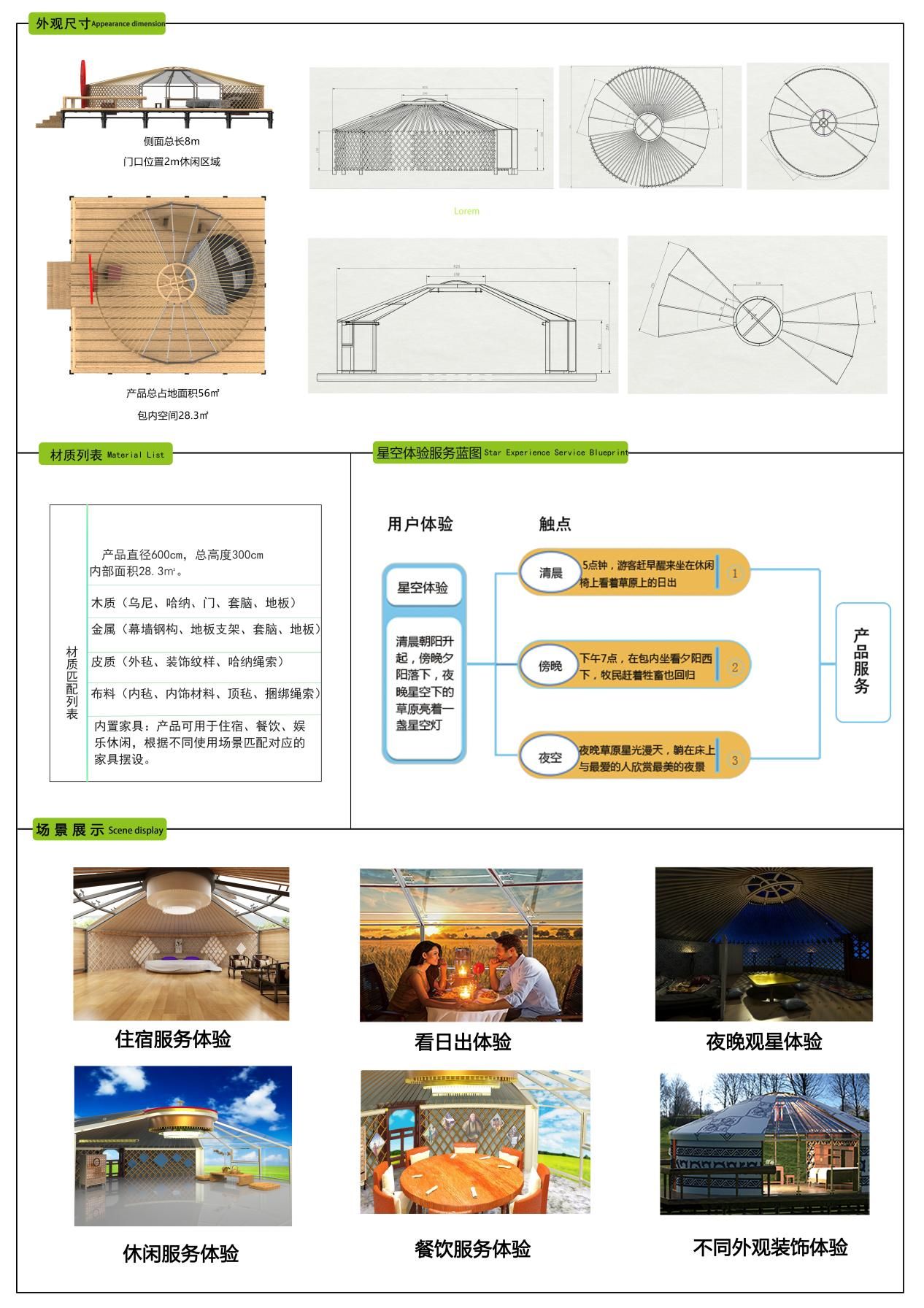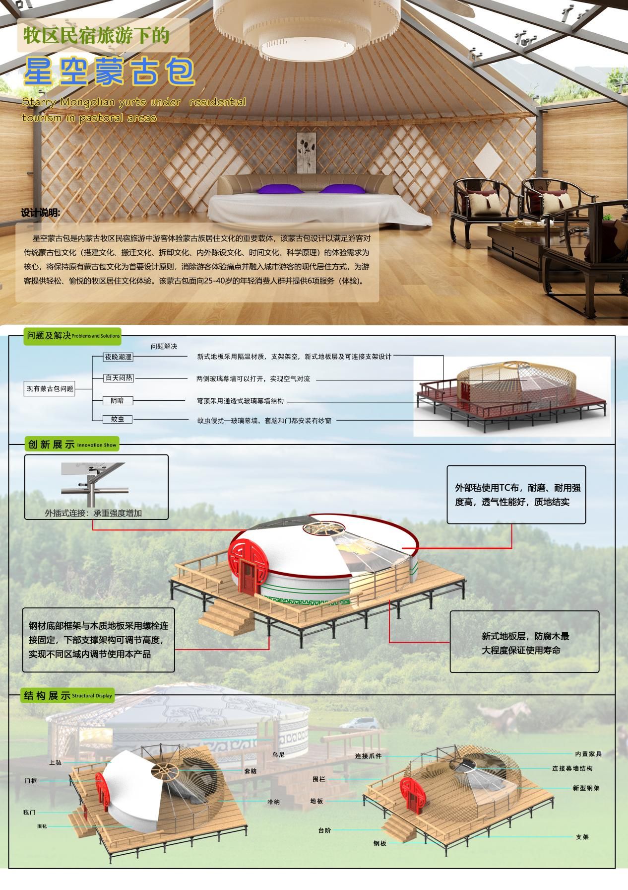 2.《民宿文化下的蒙古包设计》,教育部,2016全国大学生工业设计大赛全国赛区最具投资价值一等奖