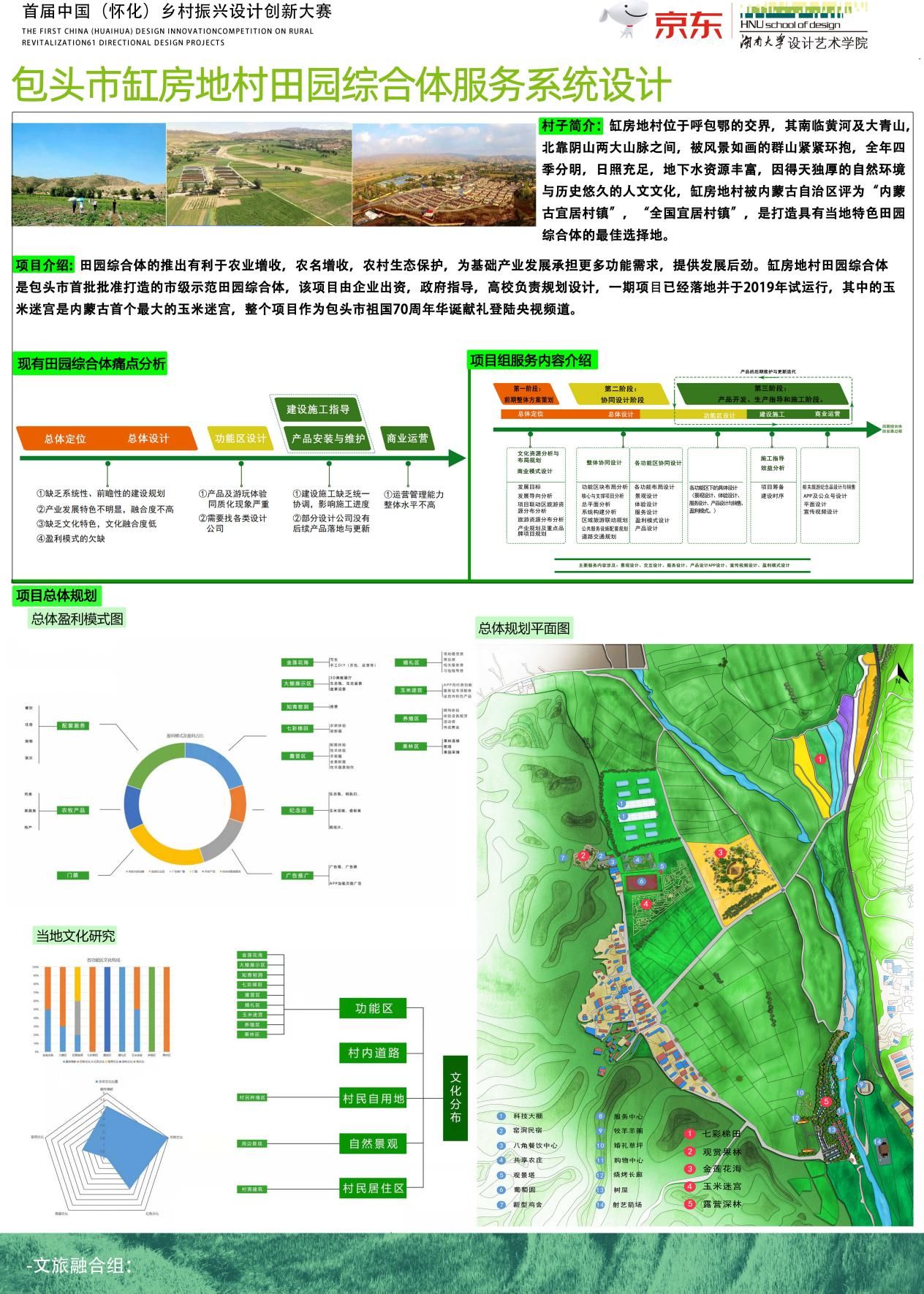 2019年艺术与设计学院与内蒙古包头市石拐区卓越蒙森田园综合体发展有限公司联合进行了石拐区第一个田园综合体的设计工作,完成了13个区域的旅游服务区域设计工作,有力的支持了地方文旅产业的发展。该田园综合体于2019年7月正式运营,卓越蒙森田综合体项目采取公司+合作社+农户的运营模式,已流转土地1050亩,规划种植有机大白菜500亩,有机杂粮300亩,金莲花150亩,共享农庄50亩,特色采摘50亩,养殖土鸡2000余只,同时利用农户房屋改造农家乐1200平米,吸引游客前来观光游玩。卓越蒙森田园综合体项目与新农村建设有机结合,将农田林木天然景色进行景观化,打造“一村一景”,体现休闲田园风光,推动休闲旅游产业发展,同时结合产业布局,如高标准农田等,打造“一产业一景”,实现产业发展与景观特色共存,让“土里土气”变为“土香土色”,打造石拐特色新地标。该项目受到了包头市、内蒙古自治区和中央媒体的报道宣传。