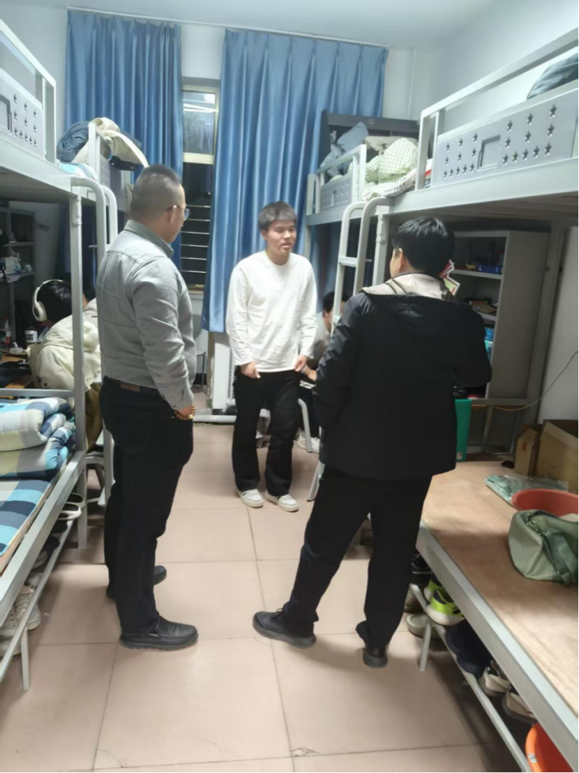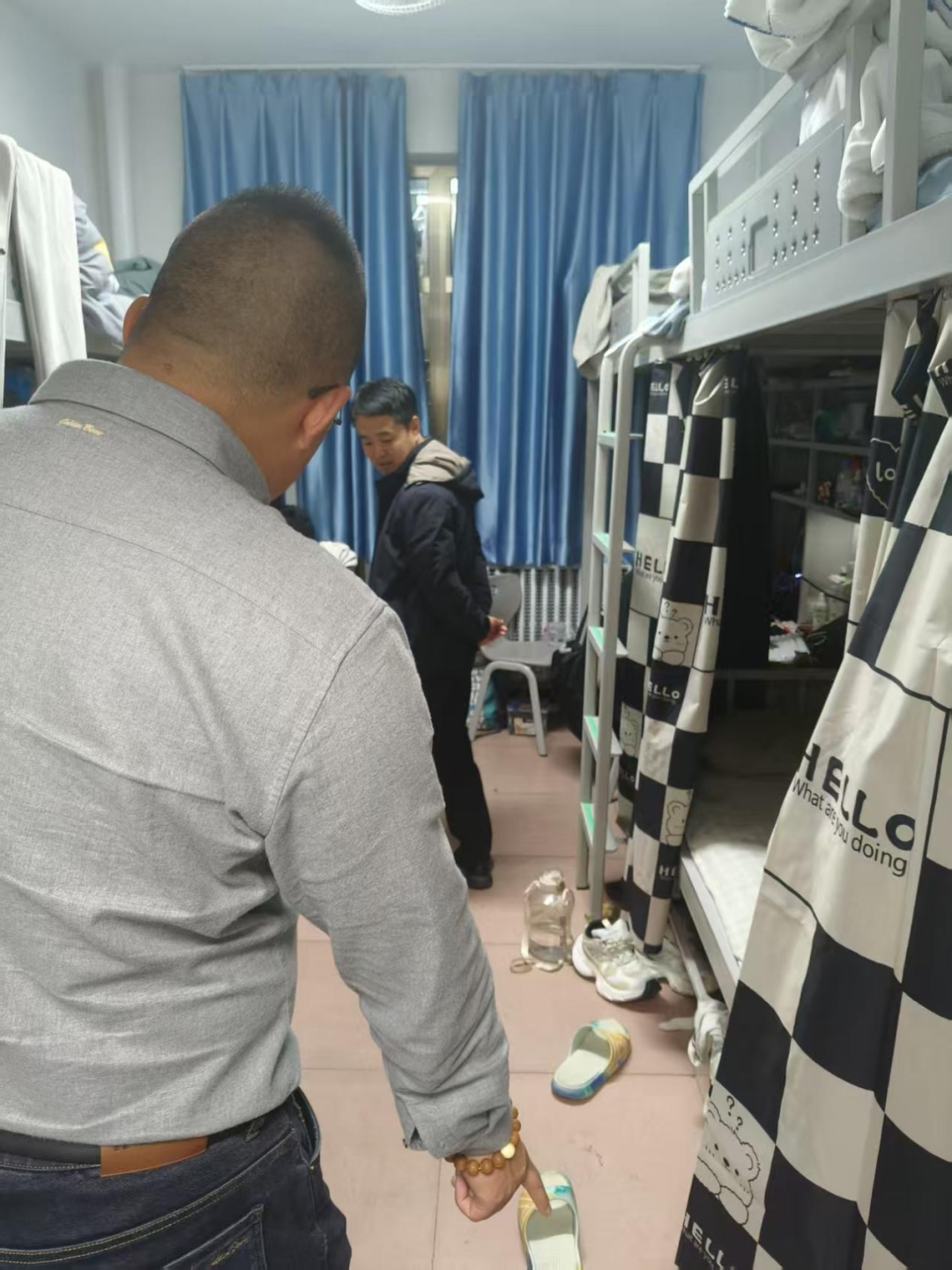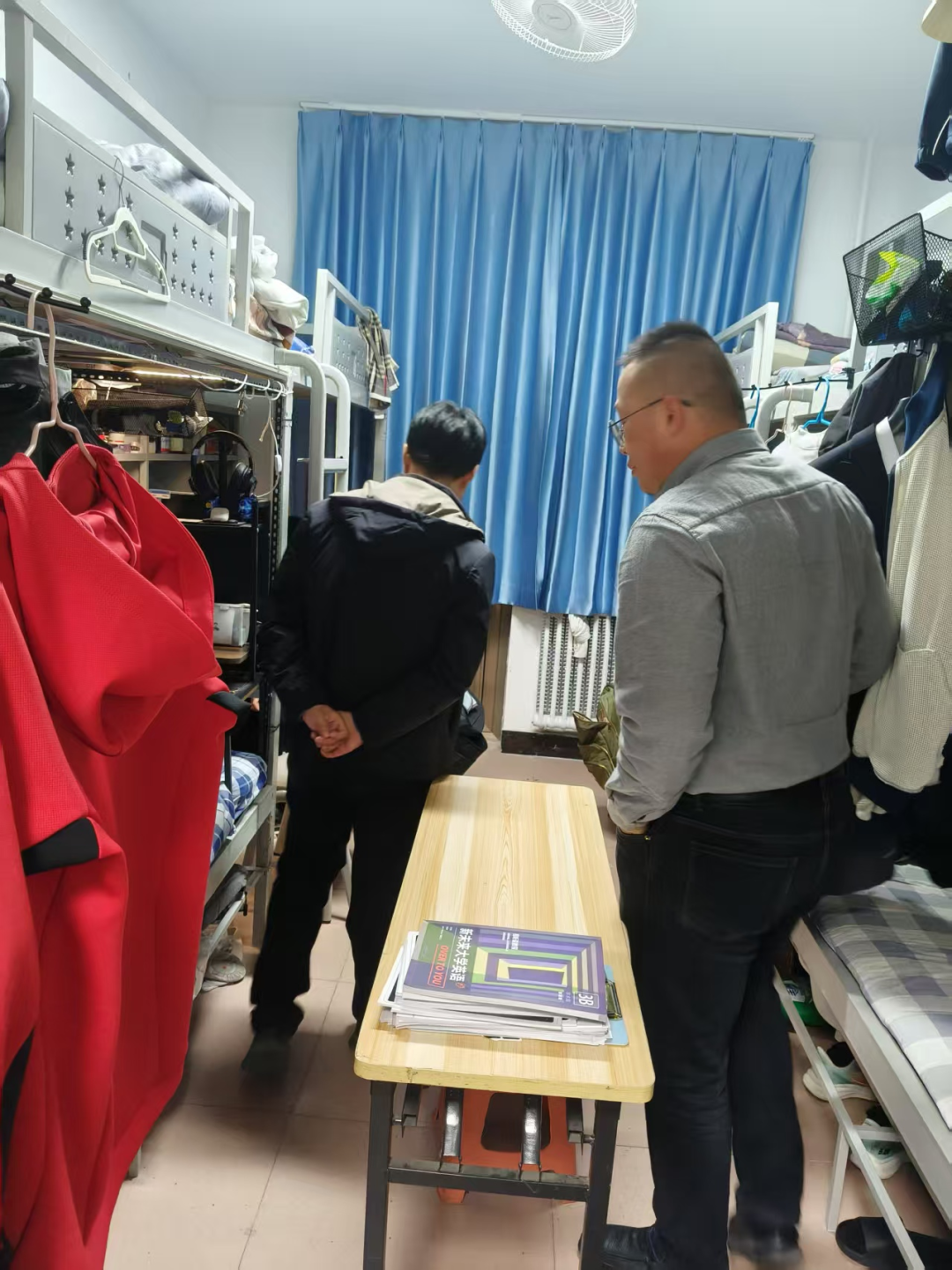 全体院领导、辅导员、班主任到学生宿舍开展学生公寓安全“双排查”行动。