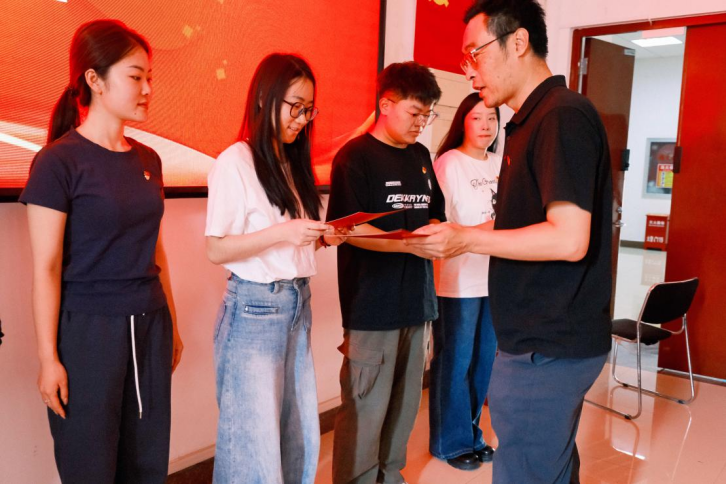 会议第四项,由包书记、吴书记为毕业生党员发放政治生日贺卡,叮嘱毕业生要铭记“入党一生一次,入党一生一世”,要持续提高党性修养,用实际行动践行对党的庄严承诺,为党和人民事业的发展贡献力量。