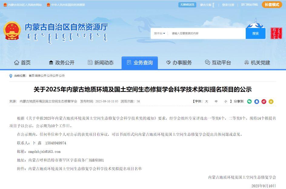 内蒙古自治区自然资源厅公布了2025年内蒙古地质环境及国土空间生态修复学会科学技术奖的评选结果。成人在线