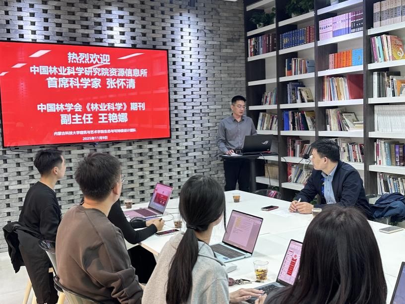 “生态修复与可持续设计”团队邀请中国林业科学研究院首席科学家张怀清、《林业科学》副主任王艳娜一行莅临学院进行学术交流。首先,魏光普老师简要介绍了学院和科研团队的基本发展情况。随后,研究生们进行汇报,张怀清教授紧扣汇报内容进行了精准点评,并围绕相关议题与同学们展开了深入探讨。此外,张怀清研究员,王艳娜副主任分别做了课题申报、论文撰写相关学术报告。本次会议为师生们提供了宝贵的学术交流与合作平台,为未来研究提供新视角、新思路,有力推动学院科研工作高质量发展。