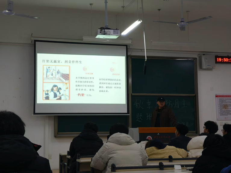 本次活动聚焦消防安全主题,播放校园安全警示视频,通过真实案例与动画演示,普及宿舍安全用电、防火常识及应急疏散等知识,强调“安全无小事,防患于未然”。