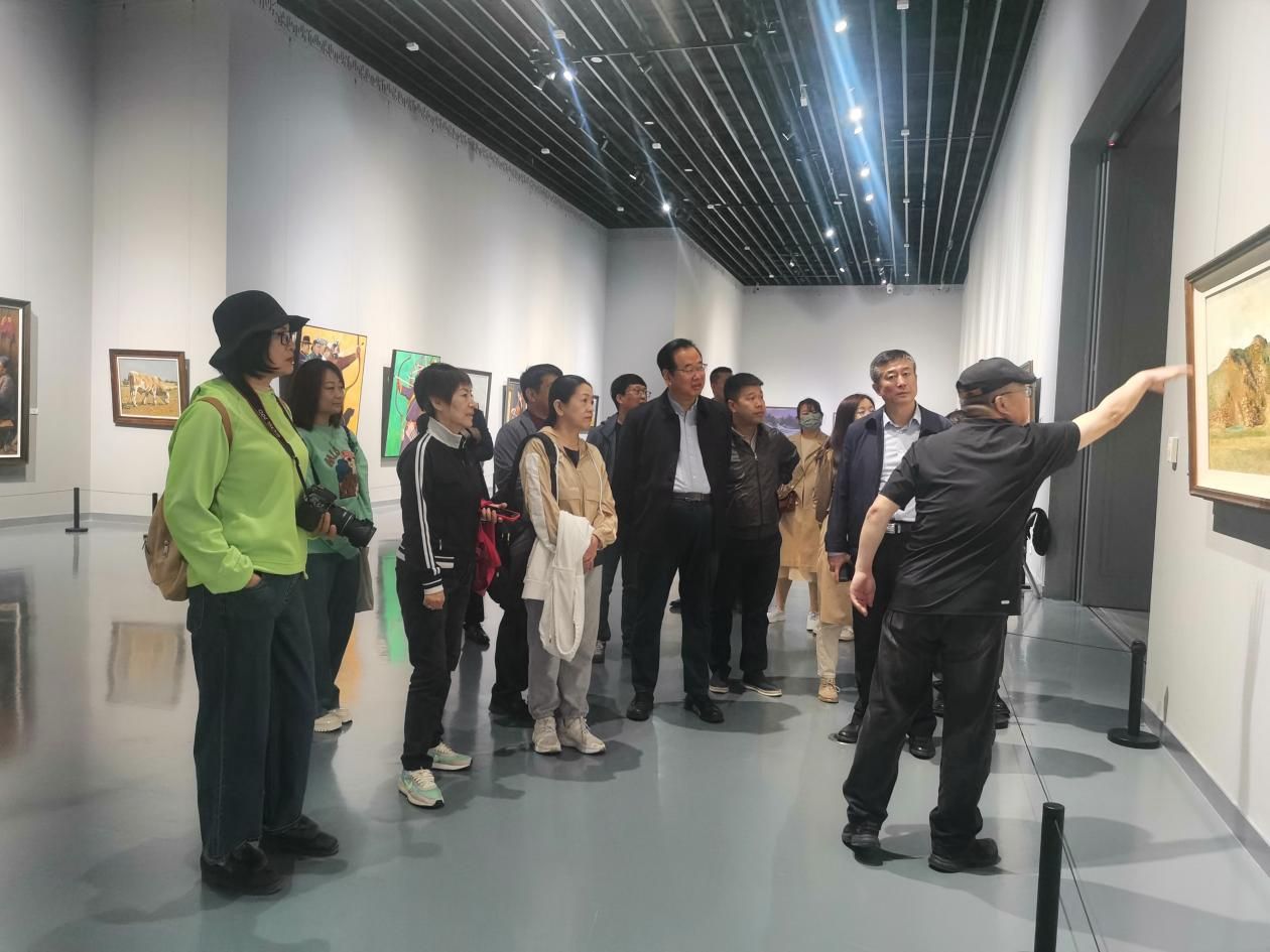 校友会呼和浩特分会组织校友参观并聆听学校老师的讲解。此次展览分为中国画、油画、版画、水彩画、摄影五个主题板块,涵盖学校12位美术学院教师和2位特邀画家创作的150余件优秀作品。