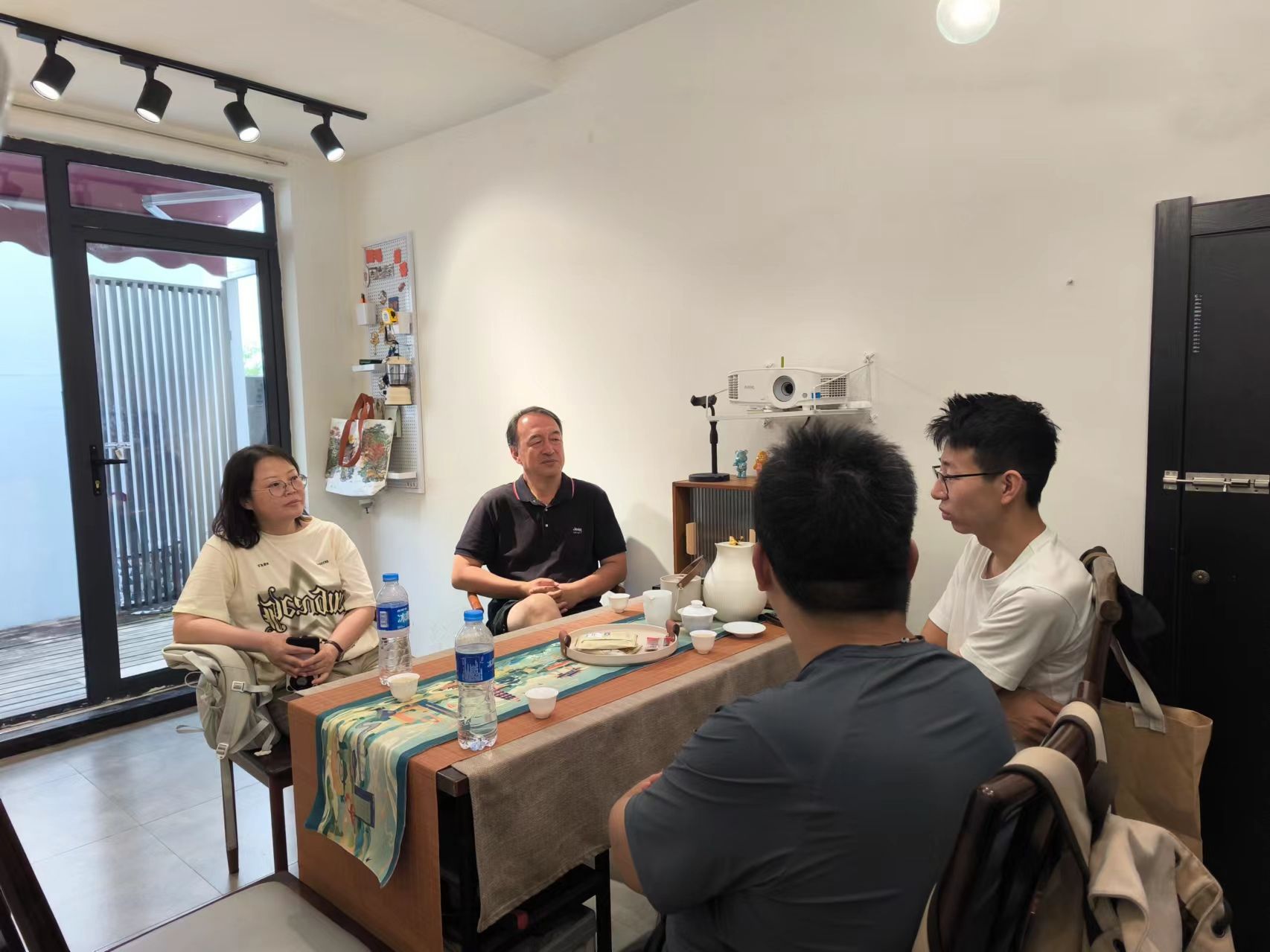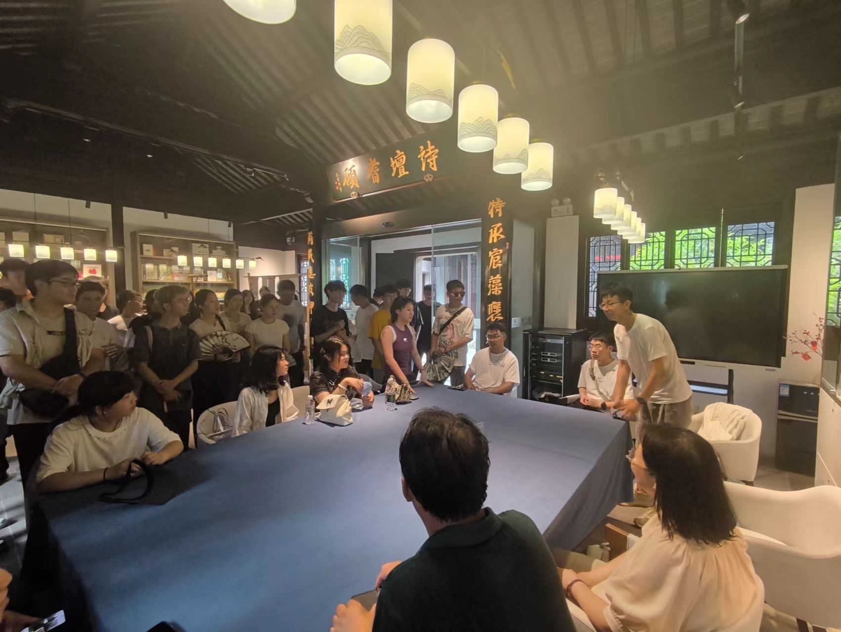 2024年7月9日,成人在线 教师宋文、薛芸、马成俊赴苏州市走访成人在线 校友——苏州市引进人才韩锐,参观了其位于苏州市旅游咨询中心的文创产品销售中心,并带领建筑学2022级全体同学进行了深入的交流座谈。韩锐分享了建筑学专业同学掌握过硬的专业知识及专业技能的重要性,同时深刻认识到专业的重要性和对未来就业的更多选择的灵活性。