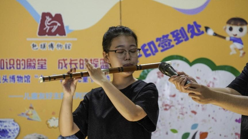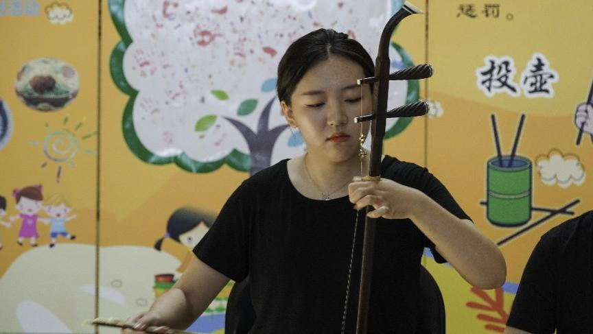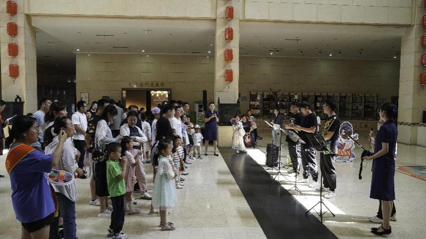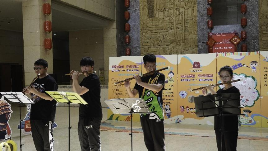 音乐表演专业的同学们为博物馆六一儿童节观展的家庭观众带来竹笛四重奏《喜相逢》、中阮独奏《酒狂》、二胡独奏《江南春色》、竹笛独奏《大漠》等曲目的精彩表演。