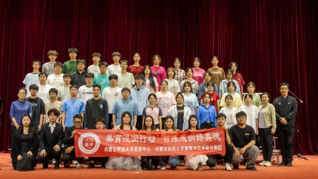 中心以“百炼成钢筑美魂”为核心,通过多元路径深化美育育人实效。4月初,文化部鉴定专家王志钟开设《玉器龙纹饰的起源与演化》专题讲座并捐赠专著,强化理论引领与资源建设;与此同时,同步推进教职工合唱、舞蹈培训,提升师生艺术素养;并依托“行走的美育课堂”,组织师生赴包头、兰州、敦煌博物馆开展文物写生与壁画临摹,以实践激活传统文化生命力。4月中旬,开展沉浸式传统文化体验活动,融合青团制作、书法创作,拉近传统美学与当代生活。并在美育创新上开展“乐动校园快闪活动”打破教学边界。4月底,《音乐欣赏》课程联动近300名非专业学生舞台展演,构建“专业+通识”浸润模式。本月累计开展活动12场,覆盖2000余人次,形成“专家引领—实践深化—创新驱动”的立体化美育生态,实现传统与现代交融、课堂与社会贯通的育人新格局。